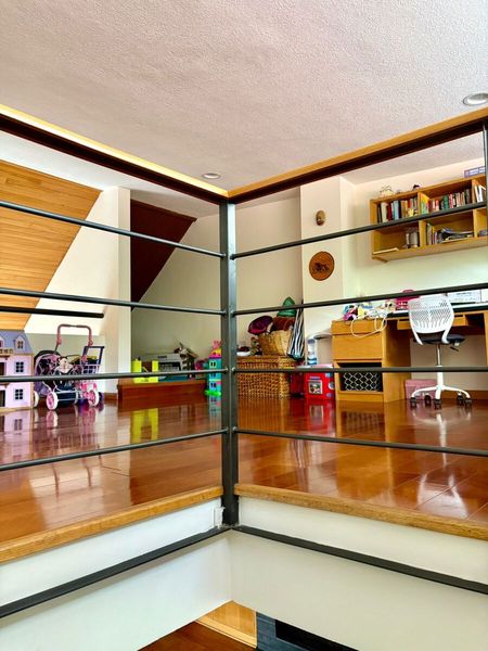 Estudio en planta alta con mueble integrado Alberca y exteriores