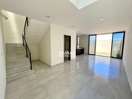 La casa cuenta con espacios amplios y funcionales, ideales para disfrutar en familia o recibir invitados. En planta baja, te recibe un cubo de doble altura que aporta una gran sensación de amplitud y luz natural. La cocina es moderna, equipada con barra de granito, ideal para quienes disfrutan cocinar con estilo. Además, cuenta con un amplio patio, medio baño de visitas y una cochera de gran tamaño con espacio suficiente para varios vehículos.