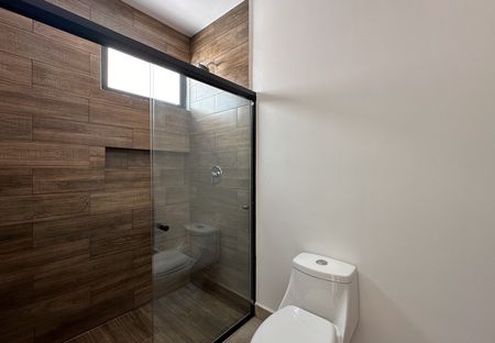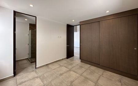 Recámara secundaria con clóset con carpintería incluida y baño completo.