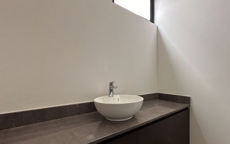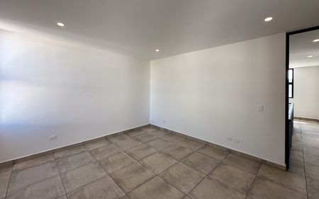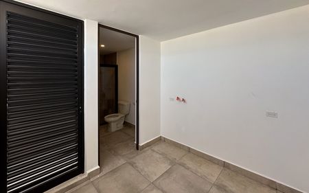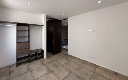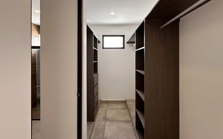 Recámara principal con vestidor con carpintería incluida y baño completo.