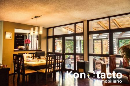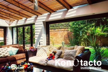 La casa construida en 2 niveles cuenta con sala comedor, cocina integral con área de desayunador, family o estudio con acceso directo al jardín, medio baño para visitas, hermosa terraza cerrada con pergolado en cristal y con acceso directo al jardín ideal para las reuniones.