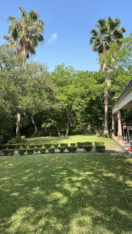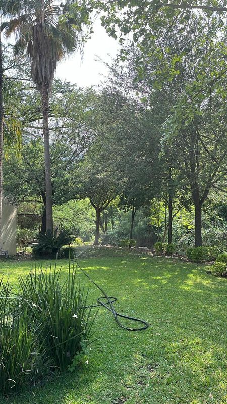 -jardín con árboles más de 200años muy grande y río que corre por la parte de atrás del jardín.
