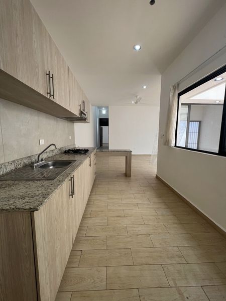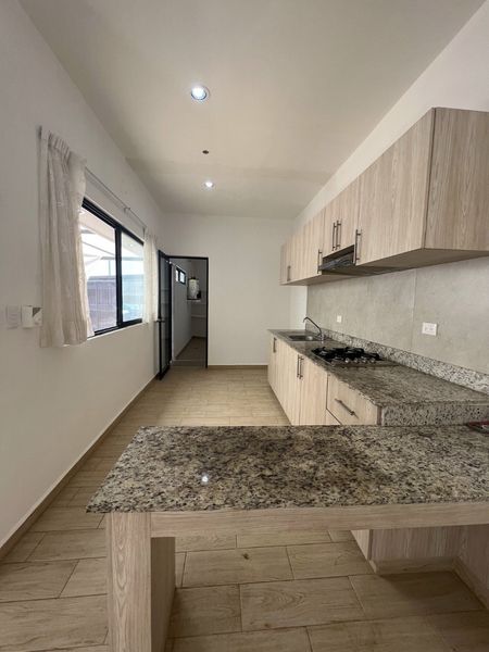 - Cocina integral de granito con parrilla de 4 quemadores, campana tipo filtro y doble tarja