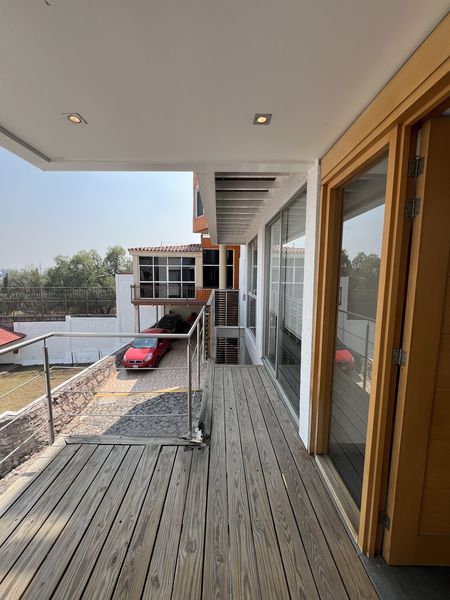 - Recámara principal muy amplia con baño completo, jacuzzi y gran vestidor. Esta recámara tiene salida a un balcón frontal y a una terraza y jardín posteriores.