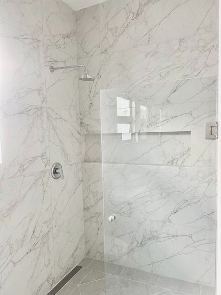 Recibidor con cristal templado de 3.60 m de altura