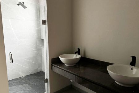 Las placas de lavabos son de granito, cada área de regadera tiene cancel de vidrio. Todas las puertas interiores son de madera solida y la puerta principal es de seguridad.