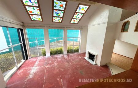 Casa en venta en Fuentes del Pedregal de Remate Hipotecario de 1,010 m2 de terreno y 1,053 m2 de construcción y 21 años de antigüedad. Planta Baja: 6 estacionamientos, caseta de vigilancia con baño, oratorio (capilla), recibidor, oficina o despacho con medio baño, comedor, desayunador con terraza, cocina con amplia despensa. Nivel medio: Sala de televisión o family room. Primer piso: 3 recámaras con baño privado y closet, la principal con vestidor y tina de hidromasaje, área de lectura o estudio (family). Segundo Piso: 2 recámaras, 1 baño con jacuzzi, estudio o sala de televisión. Azotea: Área de lavado y tendido. Nivel -1: Sala, chimenea, fuente, sala de televisión, cancha de paddle. Nivel Sótano: Salón de juegos o de usos múltiples, jardín, área de eventos o de fiestas con cantina, baño completo, 3 cuartos de servicio (uno con baño). Escriturada con posesión (llave en mano). Requiere remodelación. Valor Comercial Actual: $43,000,000.00 pesos. PRECIO DE REMATE BANCARIO: $22,800,000.00 PESOS. Entrega Inmediata (Desocupada). Pago directo al banco. Calle Fuente de la Luz esquina con el Circuito Fuentes del Pedregal, Colonia Fuentes del Pedregal, Alcaldía Tlalpan, C.P. 14140, CDMX. Los remates bancarios no se pueden adquirir mediante créditos hipotecarios. Solo pago de contado con recursos propios. Tenemos más de 250 inmuebles de recuperación bancaria en la Ciudad de México y alrededores. Solicita catálogo vía WhatsApp o una cita en nuestras oficinas al 56 3541-1424 y 5559897315. Para más información y propiedades visite RematesHipotecarios.mx