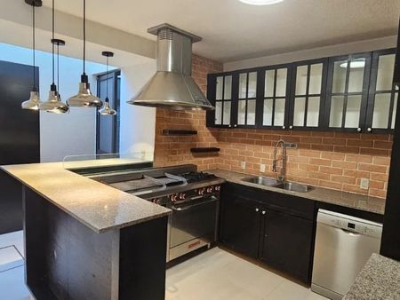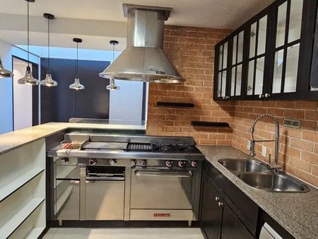 Moderna cocina equipada con elementos industriales y lavavajillas
