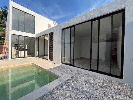 Casa pronta para entrega con 3 recámaras en planta baja. Ubicada dentro de la ciudad, al norte de Mérida, en una zona rodeada de escuelas y puntos de interés.