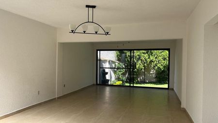 Amplia, sala y comedor con hermosa vista al jardín, cocina equipada y recién remodelada.