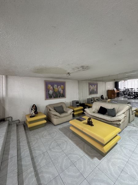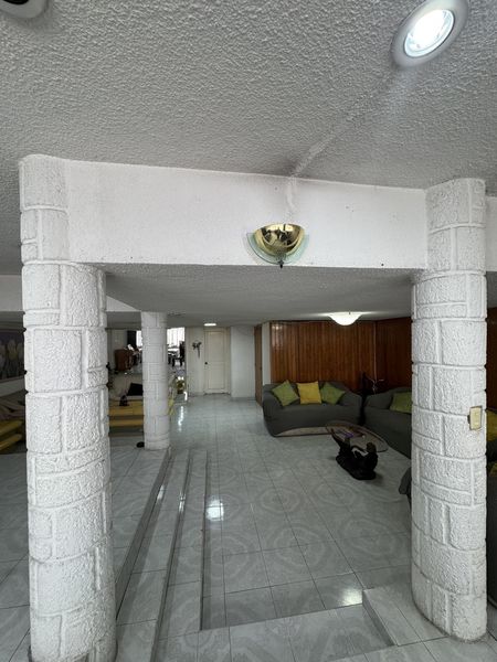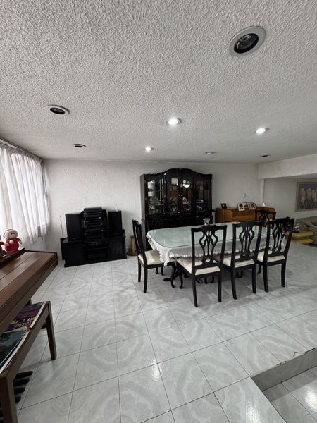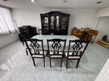 La estancia principal es amplia, dividida en tres ambientes bien definidos, con espacio para piano, órgano, bar y vitrinas.