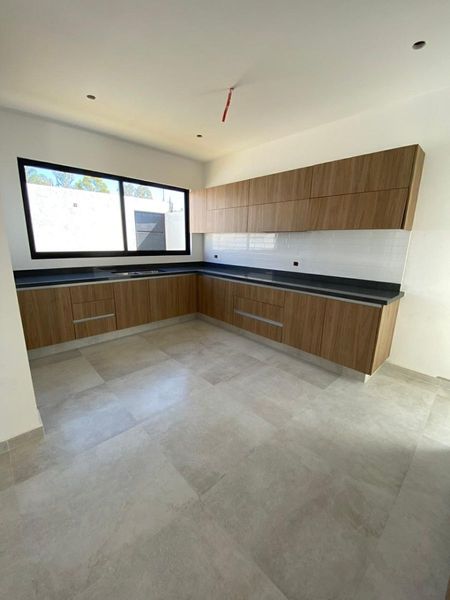 Sala, comedor, cocina, recámara con closet o estudio y baño completo, área de lavado, cuarto de servicio con baño Terraza con jardín, cochera para tres autos y pasillo lateral.
