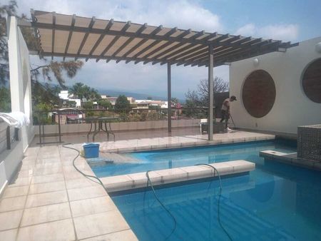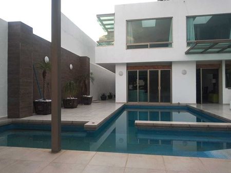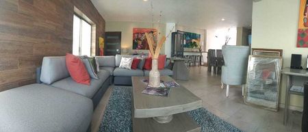 2 recamaras secundarias con baño y vestidor, sala, comedor, cocina, cuarto de lavado, cocina, baño completo para visitas, alberca, terraza, jardín y cochera para 5 autos.