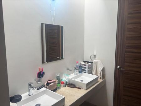 Planta alta: La recamara principal con vestidor y baño completo con cortina, Hall de TV, dos recamaras secundarias con closet y baño compartido.