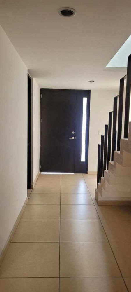 Estacionamiento hasta para 3 autos en pila / área de jardín en L / medio baño de visitas / Cocina equipada / cuarto de lavado / Sala / Comedor.