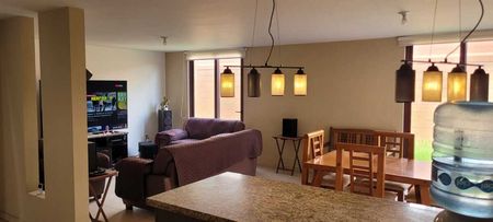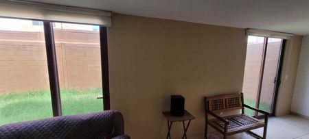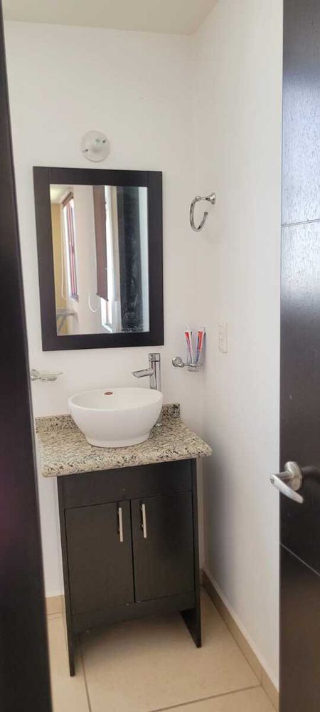 Condominio con excelentes amenidades, gran área verde, cajones de estacionamiento de visitas, palapa social con baños, alberca climatizada, vigilancia y acceso controlado 24/7