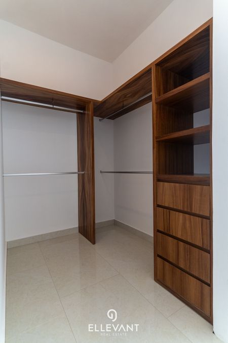 - Recámara secundaria 2 con vestidor y baño completo, instalación para ventilador y a/aAcabados y equipamiento: