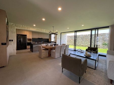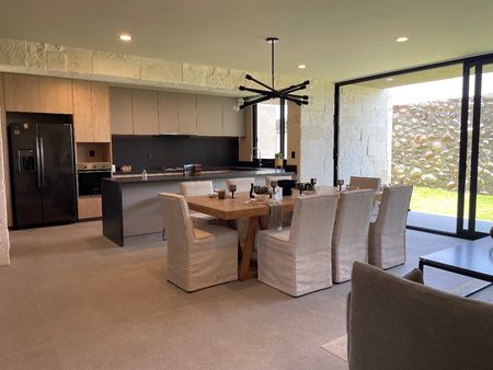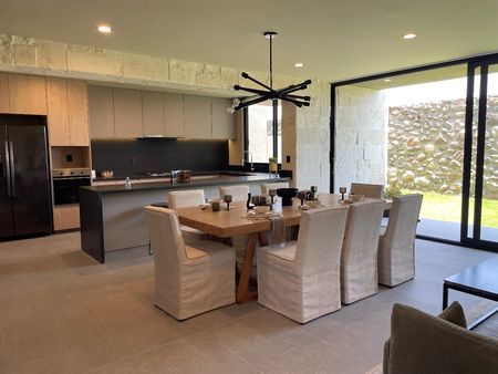 Este espectacular modelo CIELO, cuenta en planta baja garaje techado 3 vehículos, baño de visitas, sala , sala tv con baño , comedor , cocina equipada, jardín , terraza con bar, área de lavado, cuarto de servicio con baño. En planta alta, recámara principal con vestidor y baño, dos recámaras con baño y vestidor cada una . Terraza en recámaras.