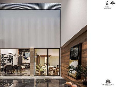 • Fachada exterior de mármol travertino y acabados interiores de mármol y piedra de la región