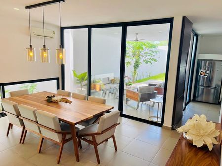 20 paneles solares, sistema de suavizante de agua y filtrado, sistema de riego, cancelería italiana, aires acondicionados, ventiladores, mosquiteros, gas estacionario, boiler, estufa con campana, sistema de riego automático, hidroneumático.