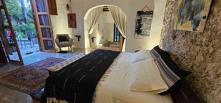 Cada detalle fue cuidado para crear un espacio cálido y acogedor, inspirado en el sur de Francia y la Toscana. Con techos de hasta 7 metros de altura y vistas impresionantes, la casa es un lugar especial. Los muebles son en su mayoría únicos, incluyendo un cofre de aproximadamente 300 años y una mesa de comedor de unos 200 años, así como las columnas talladas a mano en la cabaña exterior. Todos los acabados y electrodomésticos son de alta calidad y cada aspecto de la casa ha sido meticulosamente mantenido.