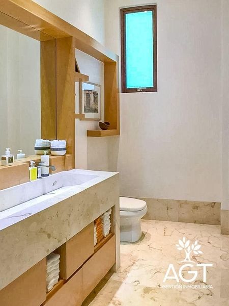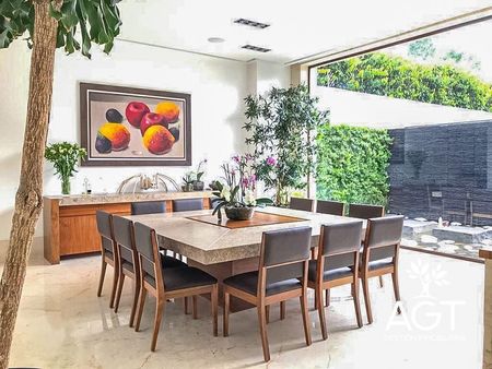 1,374 m2 de construcción en 1,200 m2 de terreno. Muy moderna y excelente arquitectura. Acabados de lujo en toda la casa. Andador de acceso a la casa con espectacular pared de agua y espejos de agua con chorros verticales. Gran jardín frontal y muy bonito jardín trasero