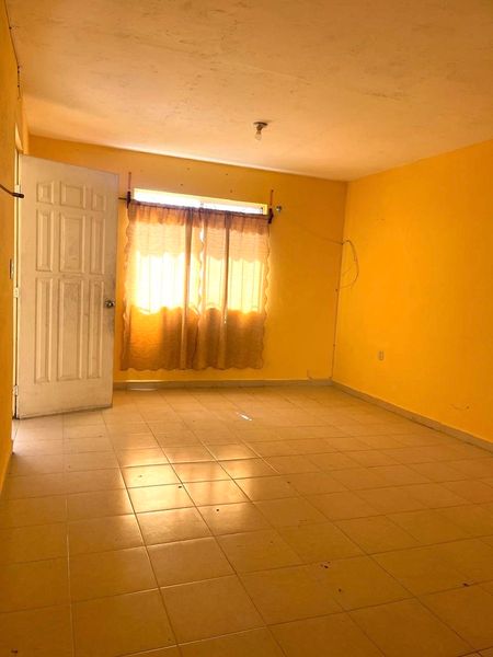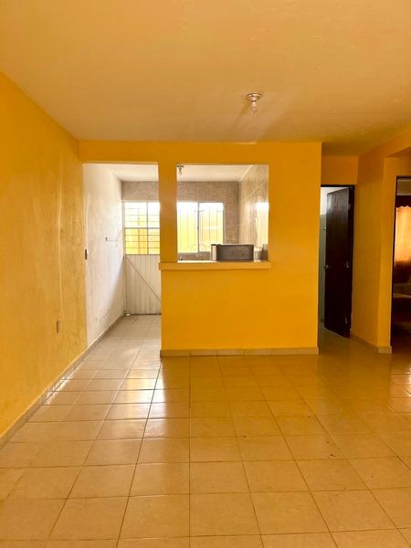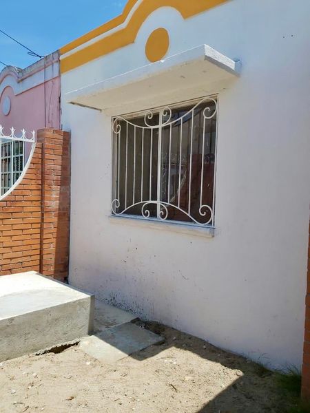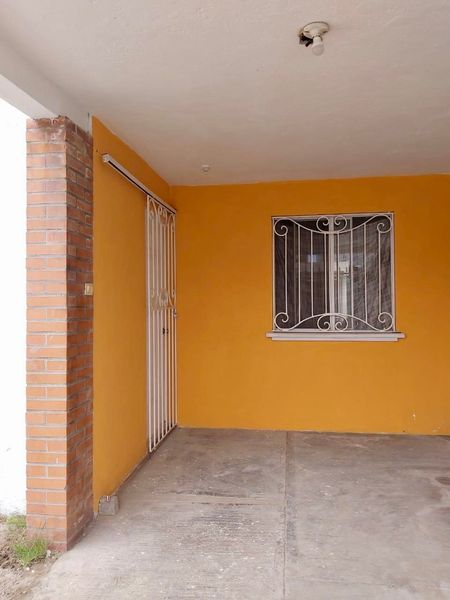 Sala, comedor, cocina 2 recamaras, 1 baño, cochera techada, jardín frontal, patio trasero.