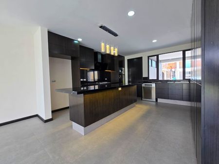 - Cocina equipada con Isla con cubierta de granito, parrilla, campana, torre de hornos, lavavajillas y tarja doble