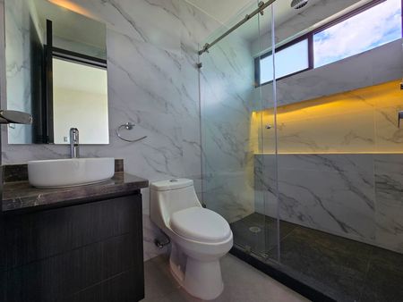 - 3 Recámaras con baño, la Principal con balcón, vestidor amplio, doble lavabo y luces indirectas