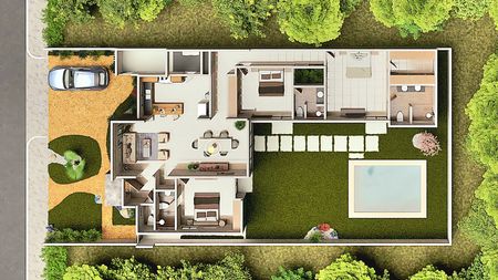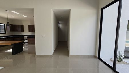 Casa de una sola planta en preventa, diseño abierto con dobles circulaciones hacia jardín y piscina. Pensada para familia que busca espacios conectados, luminosos y acabados de calidad; todas las recámaras con salida al jardín.