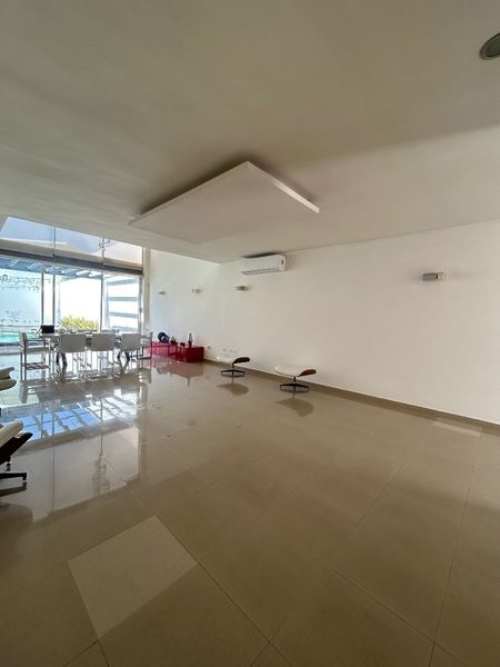 -Cortinas traslúcidas en la doble altura de sala/ comedor