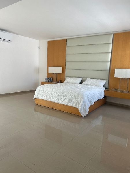 -Recámara ppal con cama King size, cabecera de madera y burós