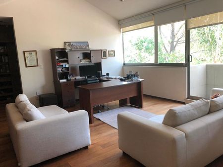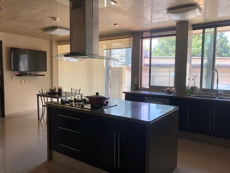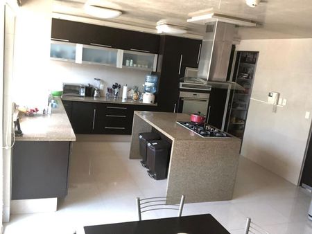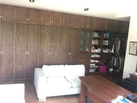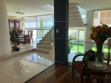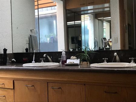 Ubicada frente a uno de los parques de la colonia, la casa cuenta con cocina equipada con cubierta de granito y con lugar para desayunador, alacena de muy buen tamaño, el comedor es amplio, sala con techo de doble altura y con salida al jardín, despacho, family room, 3 recámaras grandes cada una con baño, la recamara principal con vestidor y jacuzzi, las recamaras secundarias cuentan con walking closet.
