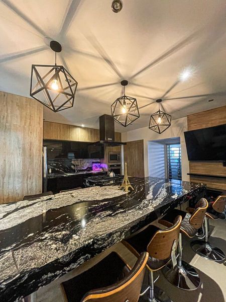 Cocina con diseño encantador y equipada con electrodomésticos de marca premium, enfriador de vinos y barra de mármol de una sola placa. Grande terraza con bar para disfrutar con los seres queridos así como asador integrado en el jardín. Amplias habitaciones con distribución inmejorable.