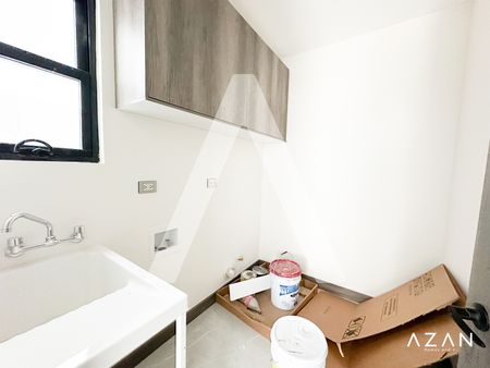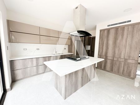 Cocina con cubierta cuarzo, en melanina y alto brillo