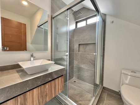 persianas, lámparas colgantes, lámparas en baños, muro verde sintético, alberca, sistema de filtrado automático, caldera de gas, pergola en roof y equipamiento de cuarto de lavado