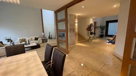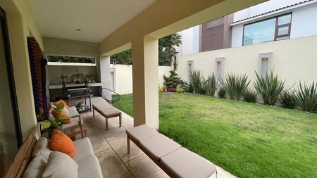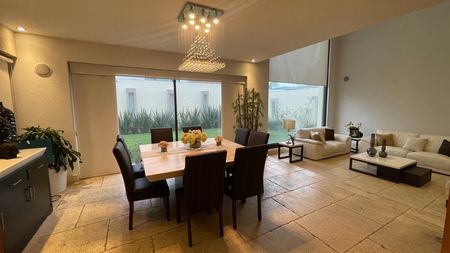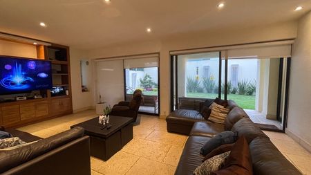 Preciosa casa estilo Barragán, ubicada en calle tranquila cercana a la caseta, construida sobre un terreno plano de excelente orientación brindando la mejor temperatura e iluminación natural al proyecto.