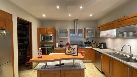 Independiente la cocina con 2 alacenas, acceso al patio de servicio y a la cochera, cuarto de lavado, cuarto de servicio y cuarto de máquinas.