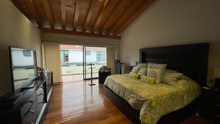 En planta alta cuenta con 3 recamaras, la principal con gran terraza de vista al jardin, amplio baño con doble lavabo y doble vestidor, y 2 recamaras secundarias con baño propio, clóset y una de ellas tapanco.