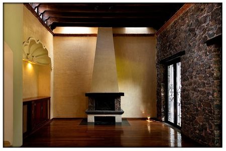 La casa está llena de detalles, madera, paredes de piedra, herrería (todas las ventanas tiene protecciones), cantera, pisos y baños con mármol, el piso de la sala-comedor de madera de tzalam y chimenea.