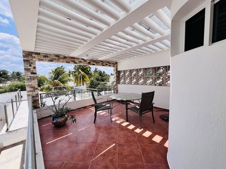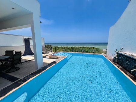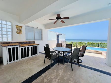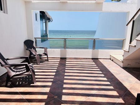 Despertar cada mañana escuchando las olas del mar o que también te arruyen por la noche, no tiene precio, es una de las características que te ofrece esta propiedad que esta enfrente de la playa. Por otro lado, tiene espacios muy lindos, como una terraza en cada una de las recámaras en planta alta, en donde podrás observar desde ahi el hermoso mar del Golfo de México, que la mayor parte del tiempo es de color verde esmeralda. Y no se diga el rooftop que el propietario construyó para su esposa, que es pintora, para que desde ahi se pudiera inspirar para realizar sus obras de arte con tan sólo tener una vista espectacular desde ese punto.