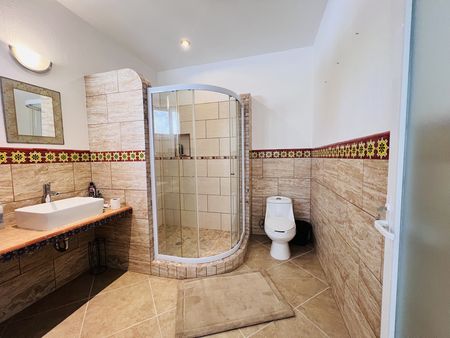 En el segundo piso hay dos recámaras, cada una con su propia terraza que dan vista al mar como mencioné anteriormente, la recámara principal con su baño completo, y otro baño completo independiente que da servicio a la segunda recámara y visitas. Hay una tercera terraza en el segundo piso, así como también una oficina o estudio. Por la recámara secundaria puedes ingresar al tercer piso donde esta el rooftop cerrado con cristales.