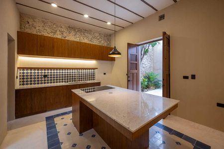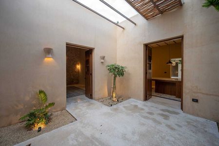 El corazón de la casa es su patio central rodeado de vegetación madura y elementos originales restaurados, ideal para convivir, descansar o disfrutar cenas al aire libre.