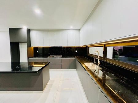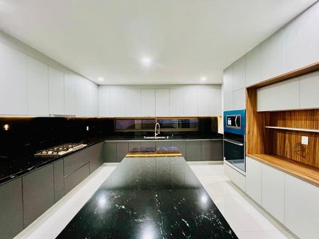 - COCINA INTEGRAL DE LUJO CON BARRA DESAYUNADORA CON CUBIERTAS EN GRANITO EQUIPADA CON TORRE DE HORNOS.