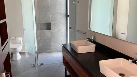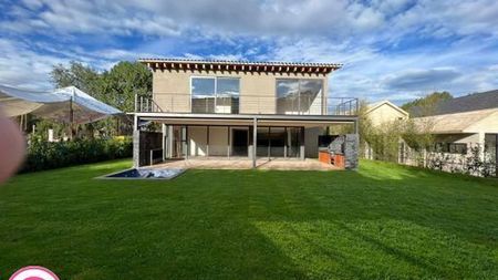 en el desarrollo Club de Golf Rancho Avandaro, ubicado en Valle de Bravo, Estado de México. Con una construcción de 450 m² y un total de 900 m² de superficie, esta casa en condominio ofrece amplios espacios para toda la familia. En la planta baja, encontrarás un vestíbulo, sala de TV, comedor y sala con terraza exterior, jacuzzi, y asador. La cocina integral está equipada con estufa, horno, campana y alacena, además de contar con área de lavado. También cuenta con una recámara con baño completo y closet, bodega, cuarto de servicio con baño, patio pequeño, 6 lugares de estacionamiento y área para bicicletas. En la planta alta, se encuentran 4 recámaras con baño completo y closets. El desarrollo ofrece servicios como comedor, gimnasio, canchas de paddle y tenis, jardín privado, terraza, seguridad 24 horas, entre otros. La propiedad se encuentra en excelente estado y es ideal para aquellos que buscan un hogar tranquilo en medio del bosque.