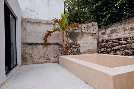 - Pequeña jardinera al frente con un lindo árbol de aguacate.