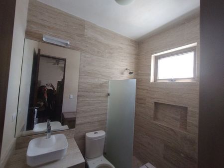 Acabados de lujo con piso de mármol travertino formato 30 cm por largo libre.
