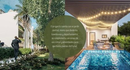 Cuenta con un área de construcción aproximada de 98 m2; con cochera para 2 vehículos techados. Al ingresar, se encuentra un medio baño y las escaleras para subir al segundo piso. De igual manera, nos encontramos con los espacios bien definidos de Sala, Comedor y Cocina. Posteriormente, con un ventanal para acceso a la terraza techada y jardín privado, y un acceso al parque central y a las áreas