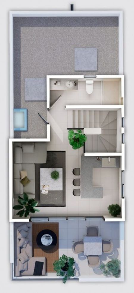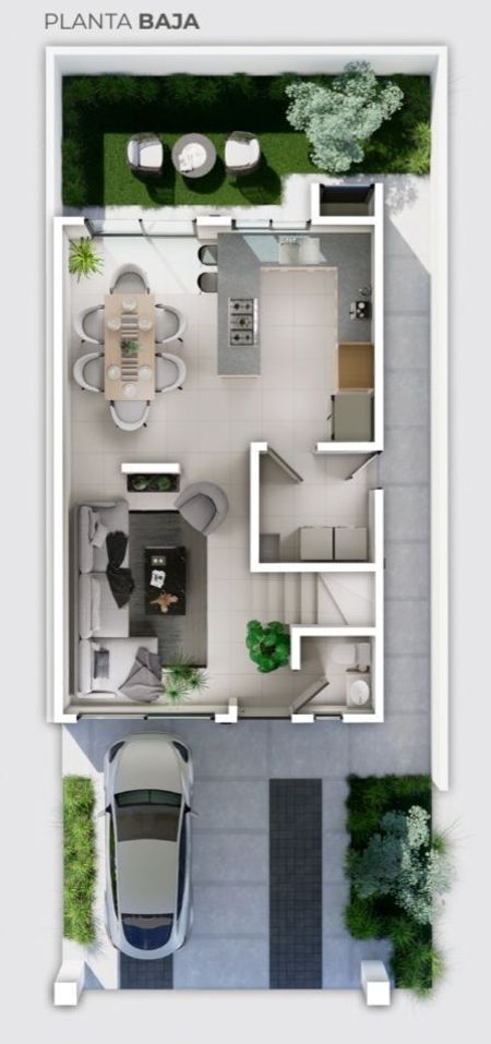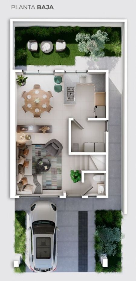 Planta alta interior, Cuenta con area de sala-comedor, cocina, baño de visitas, y cuarto de lavado, en exterior, cochera techada para 2 autos, area de jardin posterior, cisterna de 2,500 lts.