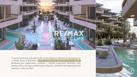 Este exclusivo desarrollo a pie de playa fusiona la serenidad del desierto con la frescura del océano, creando un santuario único donde la elegancia se conecta con la naturaleza mientras disfrutas de las comodidades de nuestras increibles amenidades.